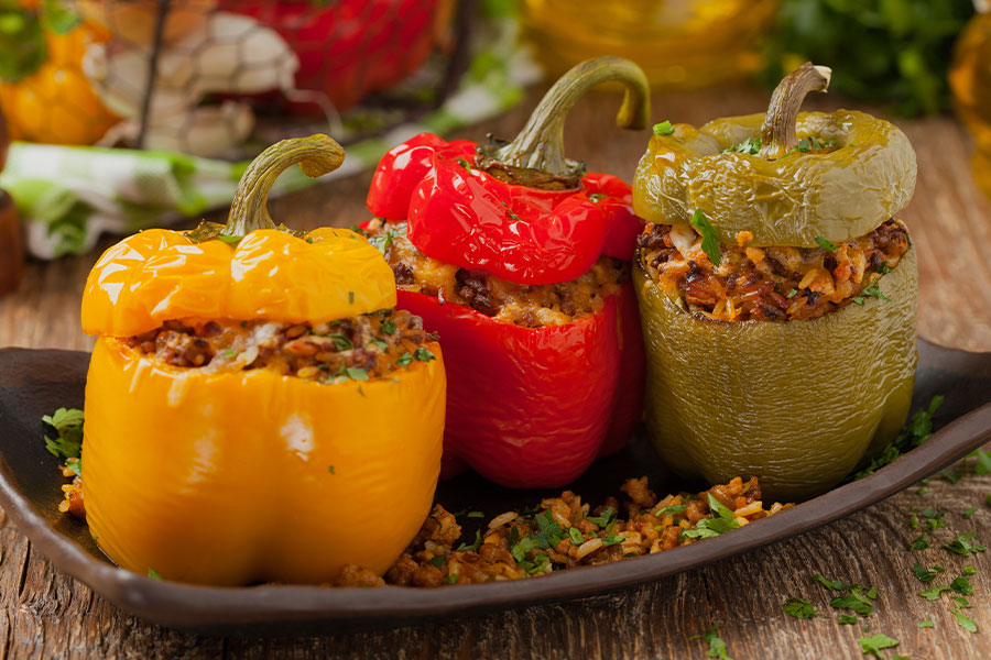 Tabbouleh with pita chips, Hummus with naan bread, Baba Ganoush, Chickpea Burgers with Tahini Yogurt Sauce, Kofta with Spicy Tomato Sauce, Umm Ali (Egyptian Bread Pudding), Honeyed Pistachio Cups